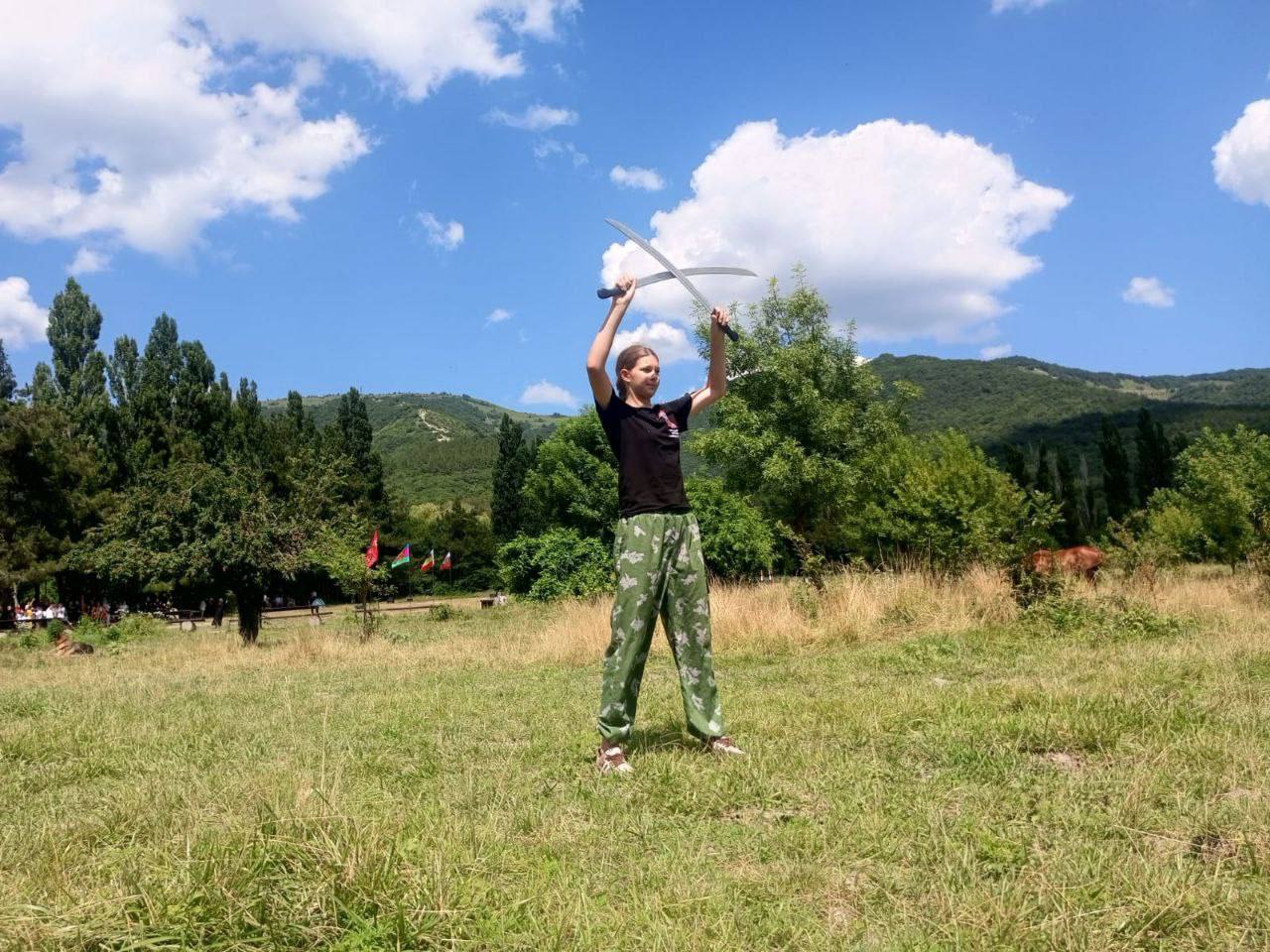 Лидия Павленко поразила судей и зрителей своими уникальными приемами. Шашки, словно молнии мелькали в воздухе, перемешиваясь с акробатическими элементами и ударами. Зрители наслаждались ярким выступлением награждая участницу аплодисментами и эмоциями.