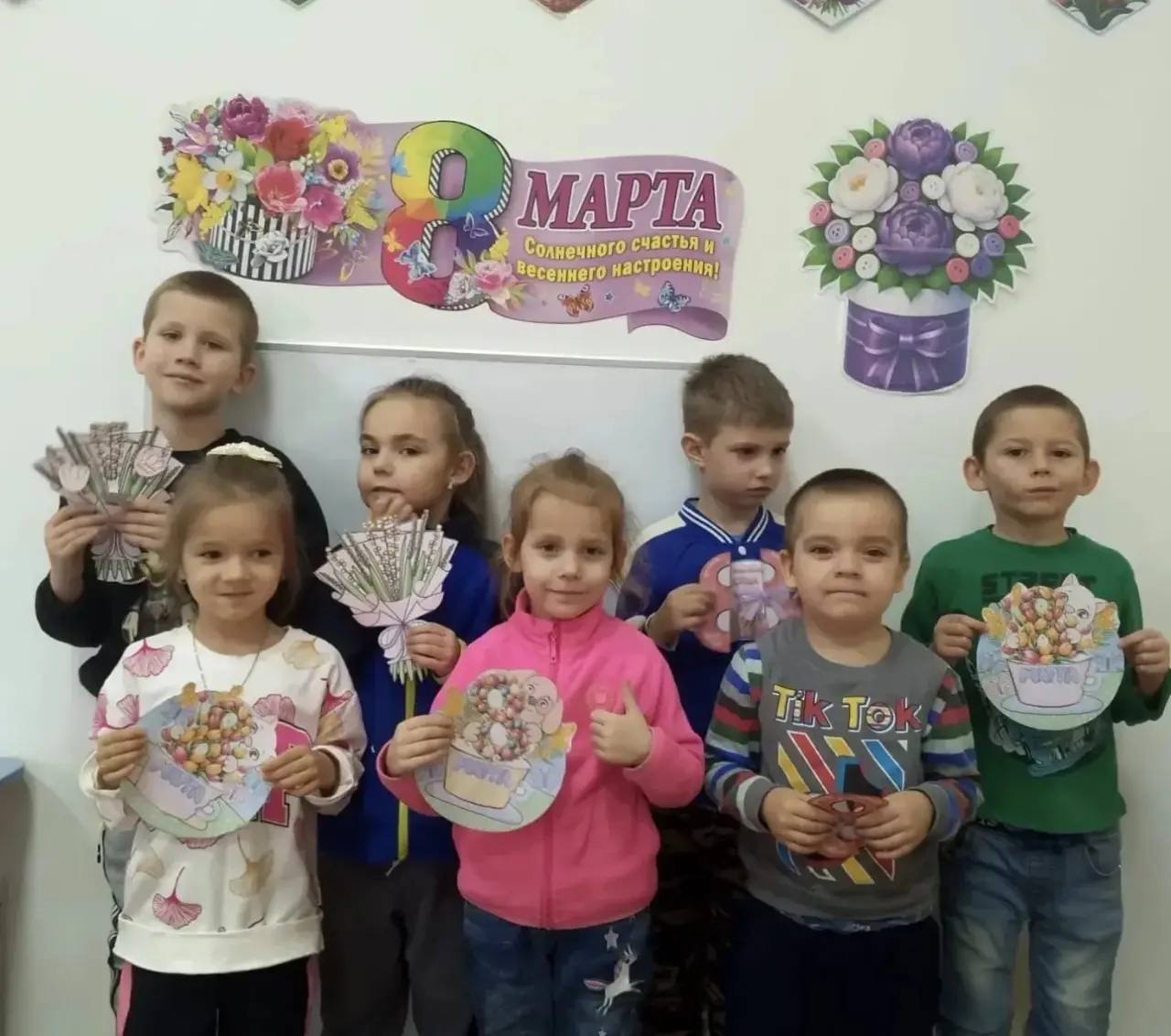 Малыши очень старались! В каждое поздравление была заложена частичка души ребенка и неповторимый стиль. Трогательные сюрпризы уже вручены самым дорогим людям - мамам и бабушкам.