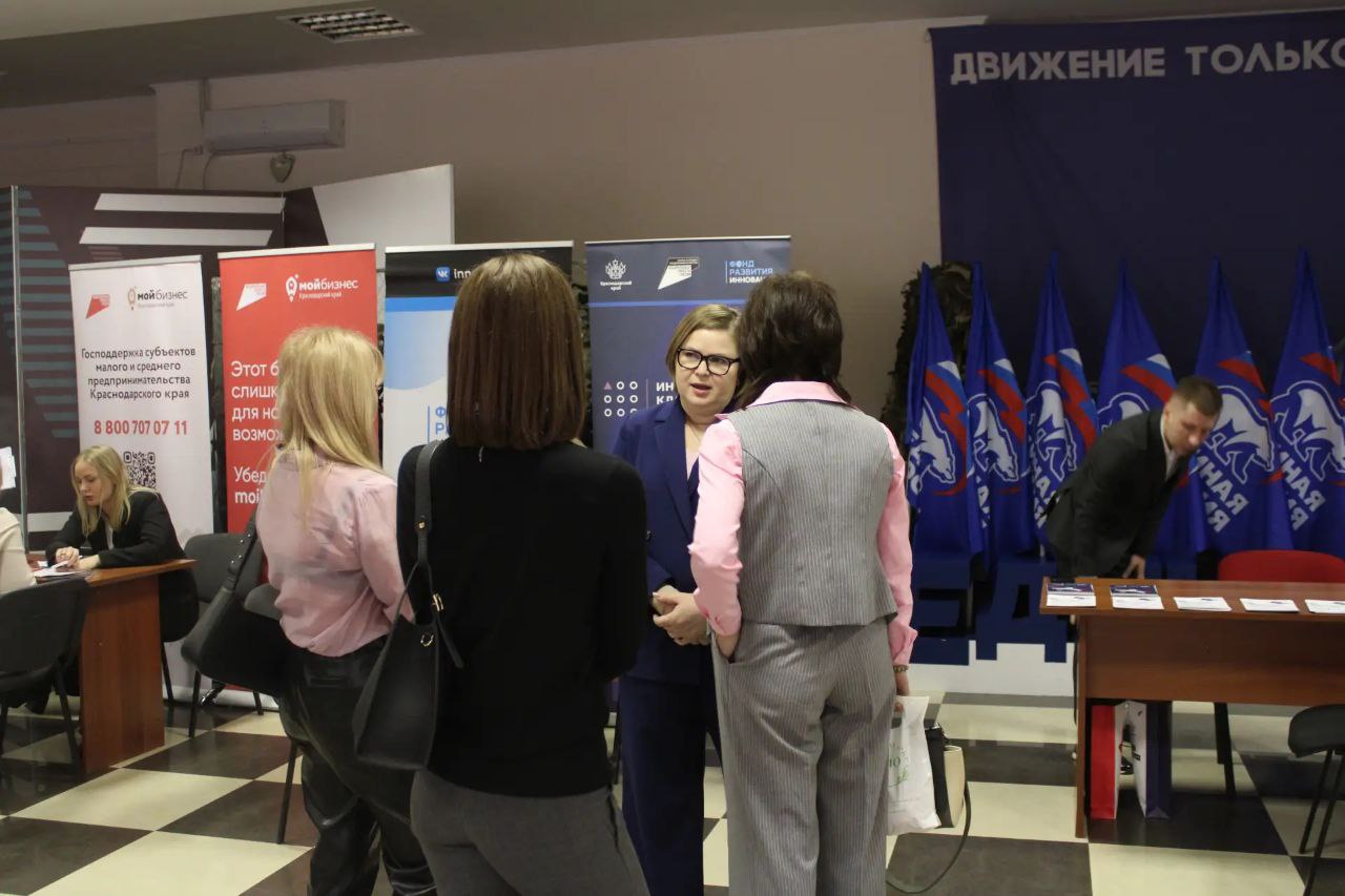 Для участников работали консультационные пункты фондов развития бизнеса, микрофинансирования, развития инноваций, развития промышленности Краснодарского края, центра поддержки экспорта, агентства по привлечению инвестиций, аппарата уполномоченного по защите прав предпринимателей региона, налоговой службы и прокуратуры края. Институты развития бизнеса оказывают поддержку в рамках нацпроекта «Эффективная и конкурентная экономика».