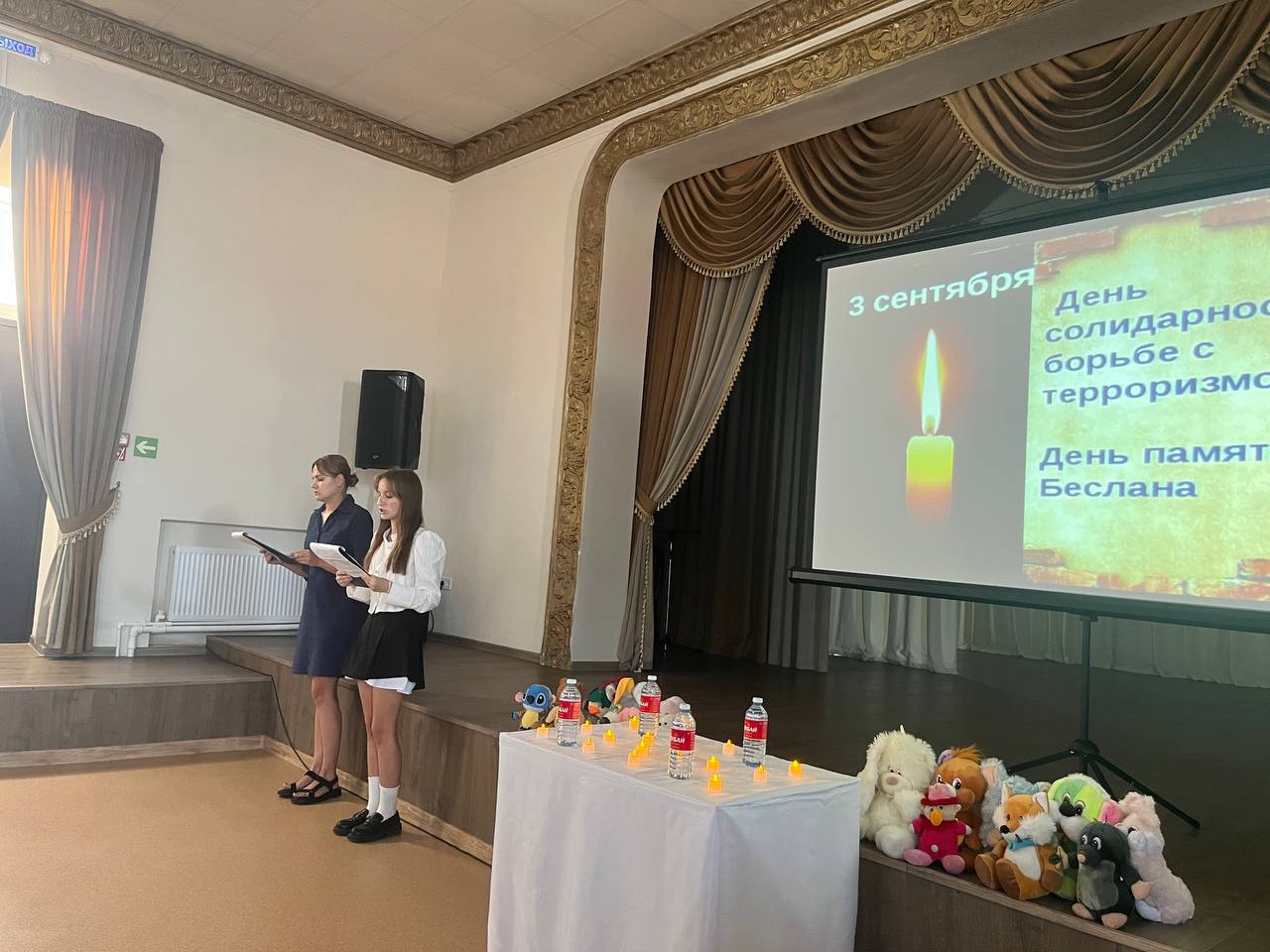 Ведущие рассказали ребятам о важности и значимости проблемы терроризма, об истории появления этой памятной даты. В ходе мероприятия ребята могли не только услышать, но и просмотреть кадры того страшного дня, которые произошли в Беслане в далеком 2004 году. Также раскрыли понятия «терроризм», «теракт» и причины, порождающие желание совершать террористические акты. Размышляли, что для каждого из них означает слово «Мир».