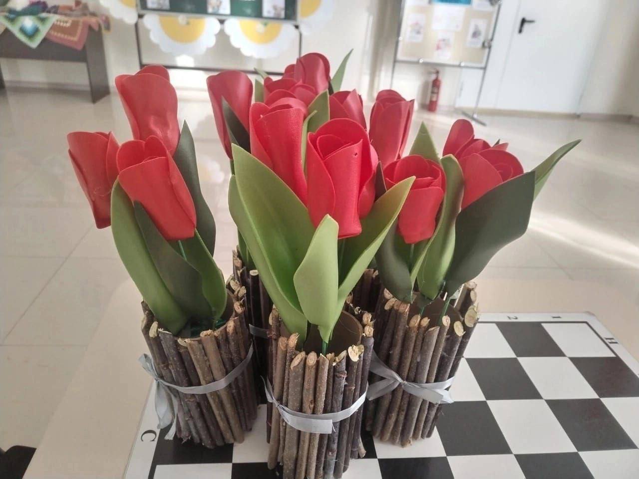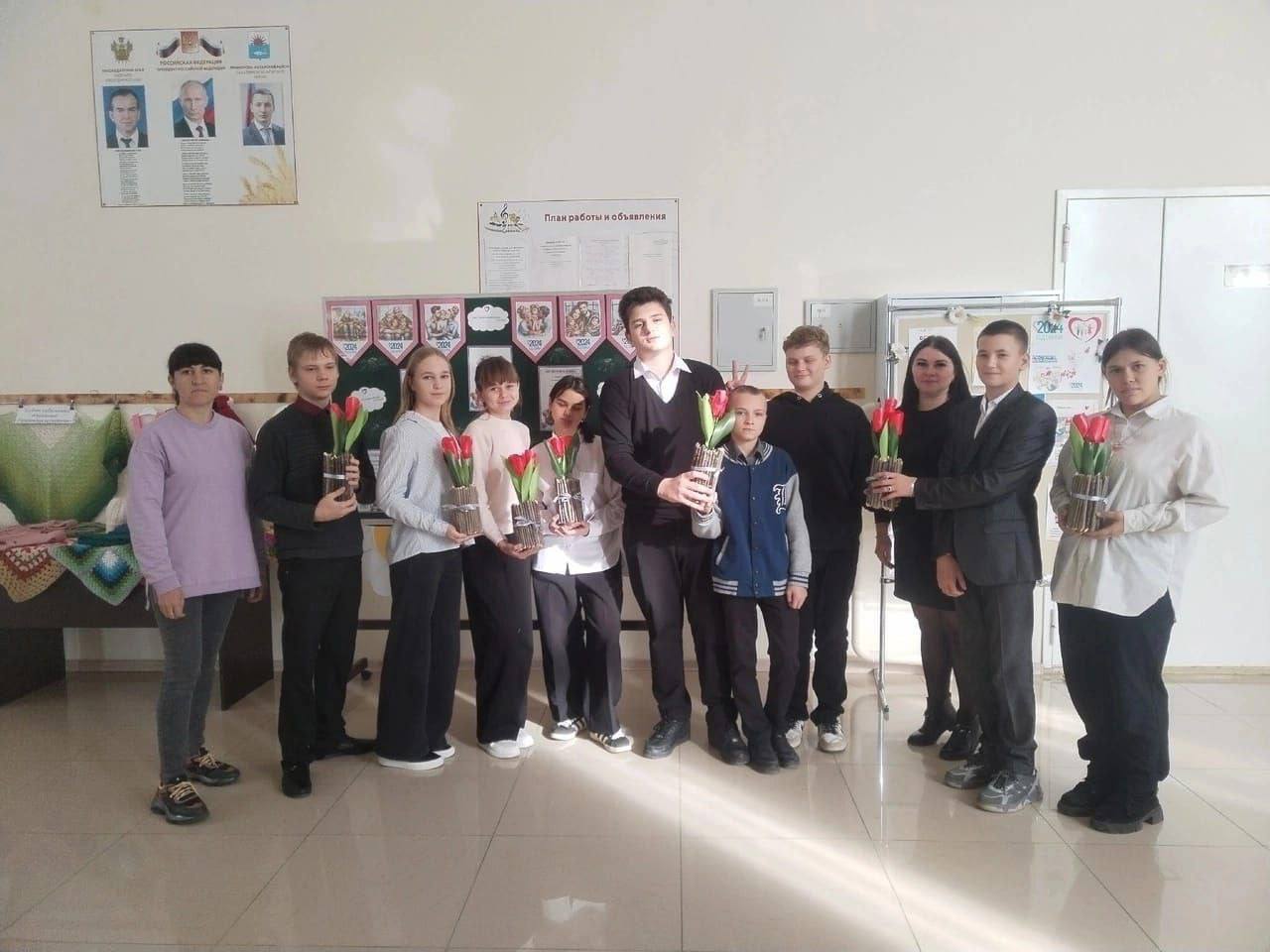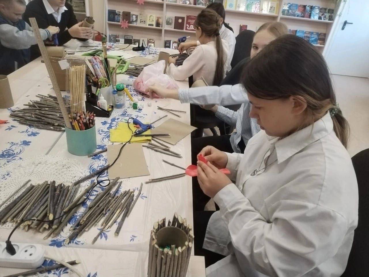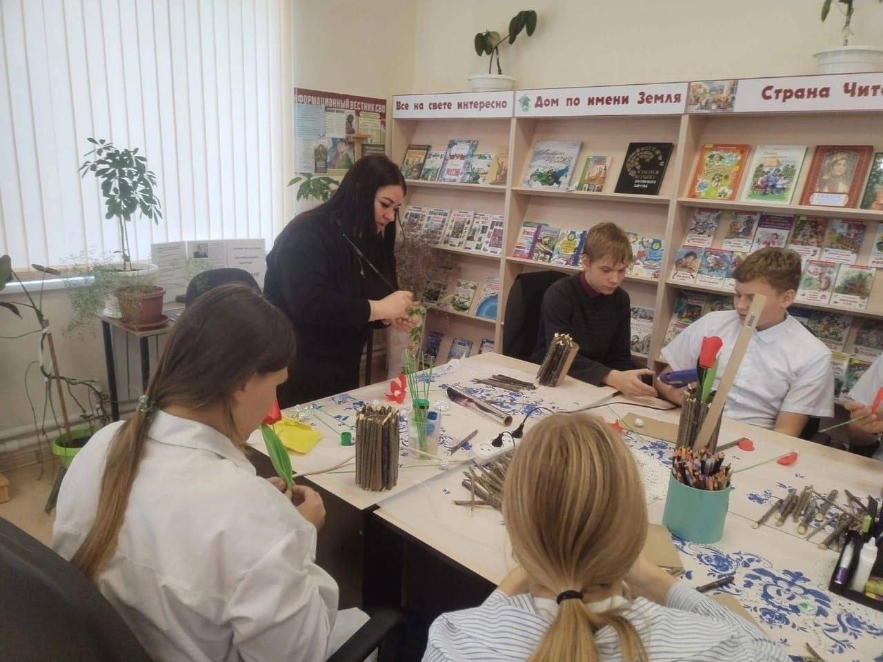 В начале встречи библиотекарь кратко рассказала об истории праздника, а ученики поделились своими мыслями о том, какие цветы особенно нравятся их мамам. Затем все дружно взялись за творчество.