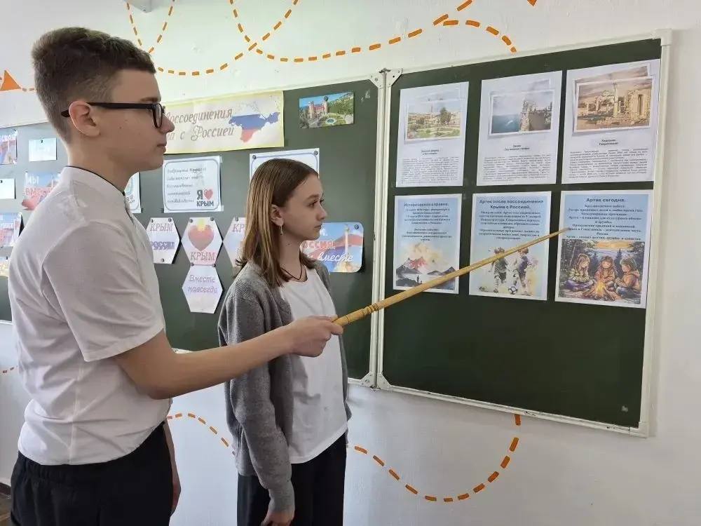 Итогом мероприятий стало оформление стенгазеты -которая включила в себя информационные блоки о важнейших исторических  этапах присоединения Крыма, фотографии и иллюстрации, рассказывающие о культуре  и природе полуострова.