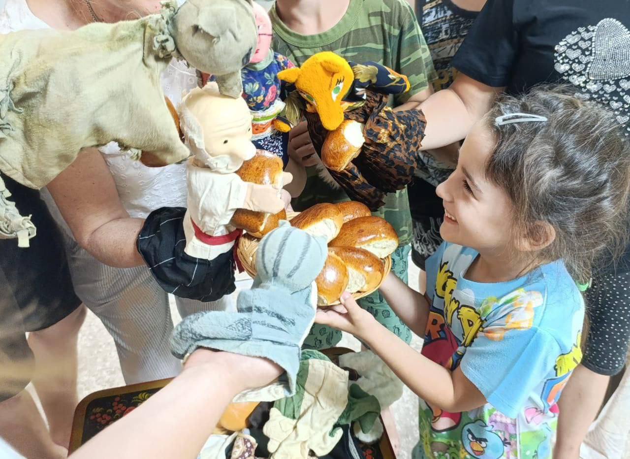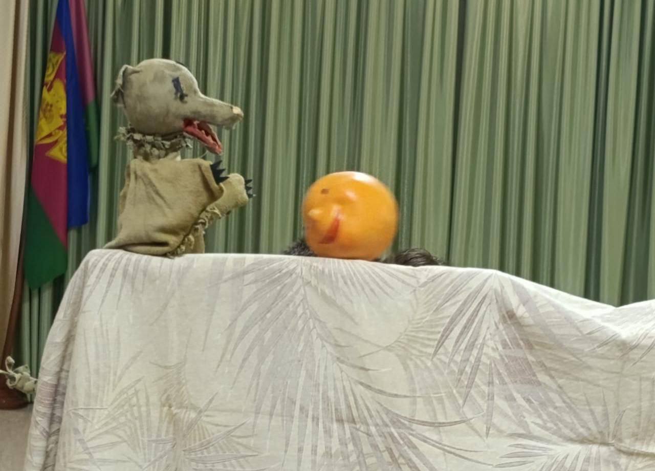 А потом ребята постарше выбрали себе сказочного героя и показали малышам театрализованное представление по мотивам сказки «Колобок». В конце мероприятия дети получили пирожки,  которые напекла им «бабушка» из сказки «Колобок».