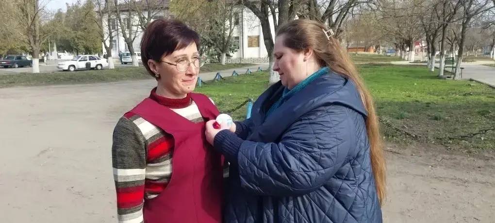 Жителям Ахтарского  были вручены памятные значки «Мы вместе - Россия и Крым».