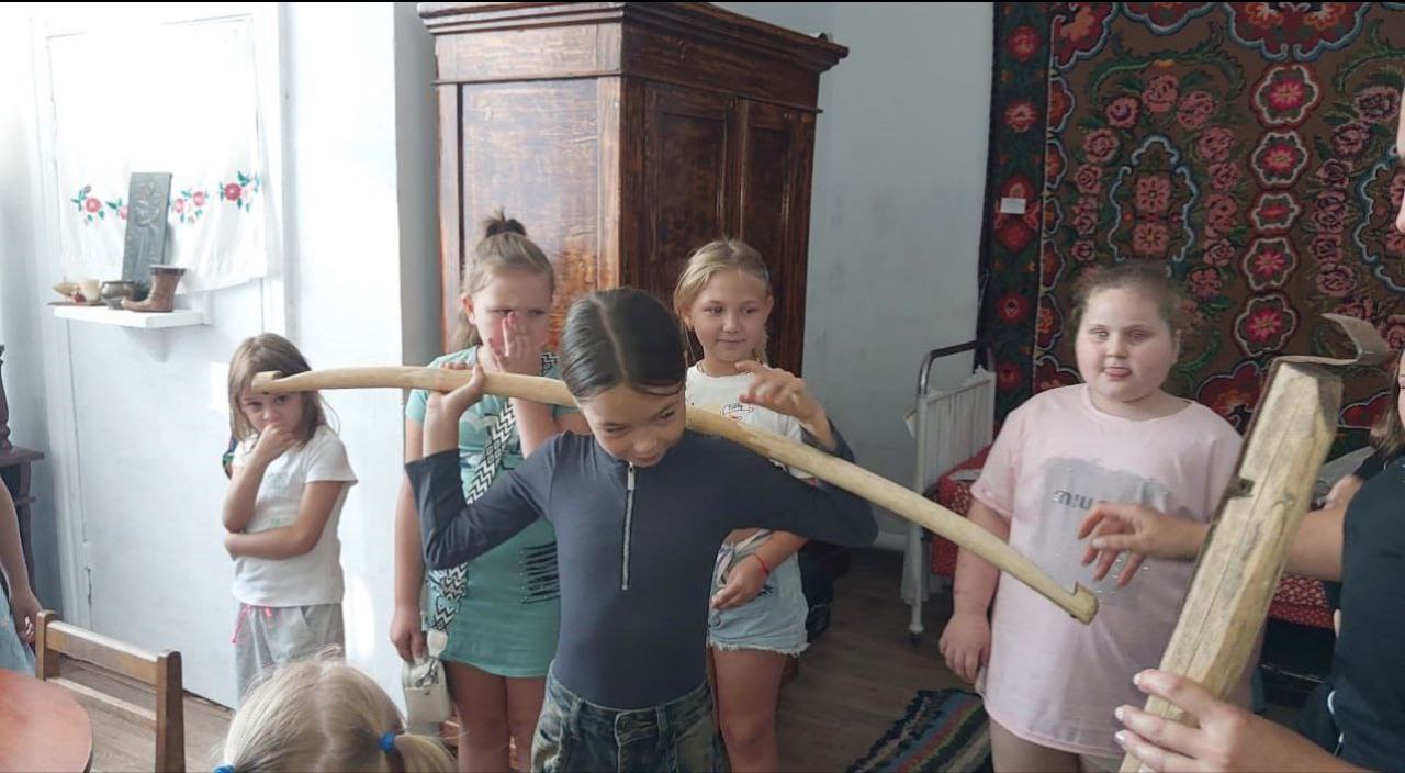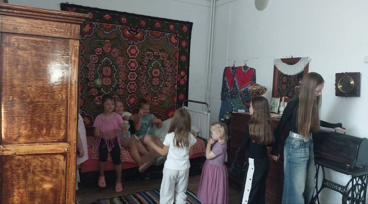 Работники СДК показали участникам экспонаты, которые в свое время были частью быта казаков: казачий плетень, взрослую кровать, старинную этажерку, столовую утварь и другие предметы старины.