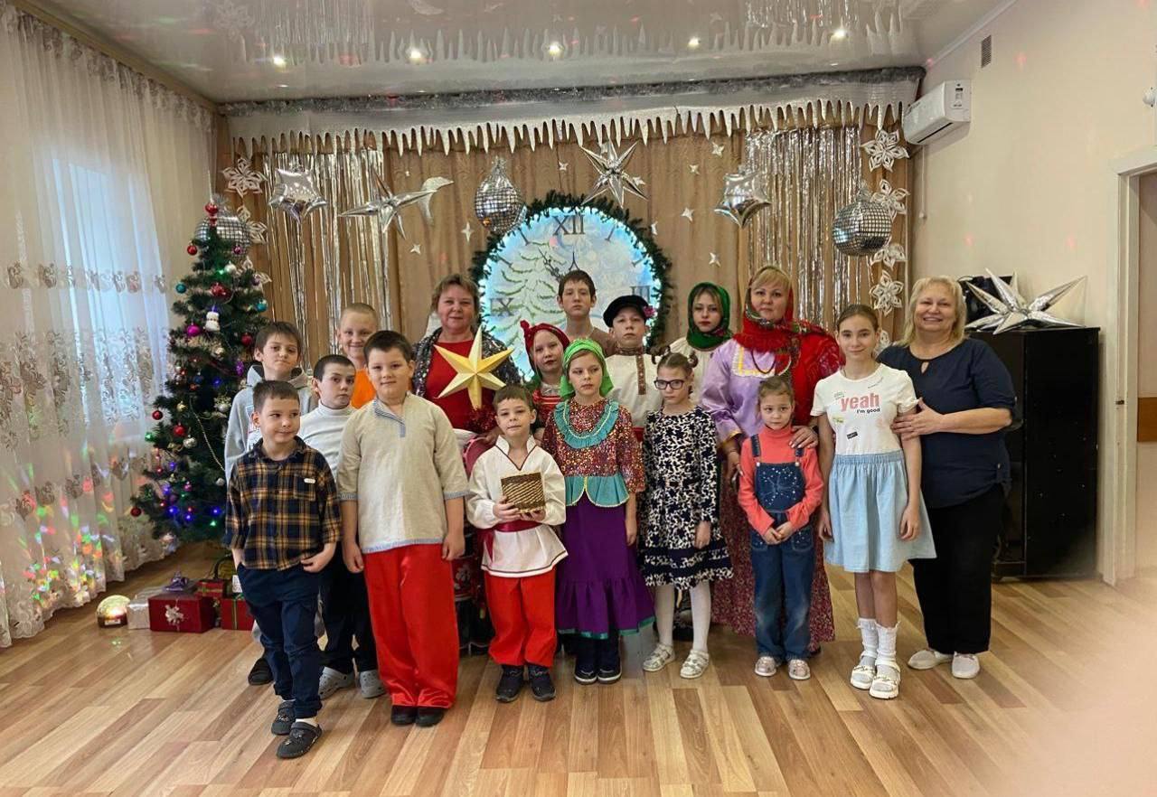 Они приготовили  костюмированное представление: ребята нарядились в русские народные костюмы, выучили веселые детские колядки, посвященные Старому Новому году. Вместе с музыкальным руководителем Светланой Николаевной и воспитателем Жанной Викторовной мальчики и девочки так же поздравили сотрудников соцзащиты и реабилитационного  центра «Надежда».