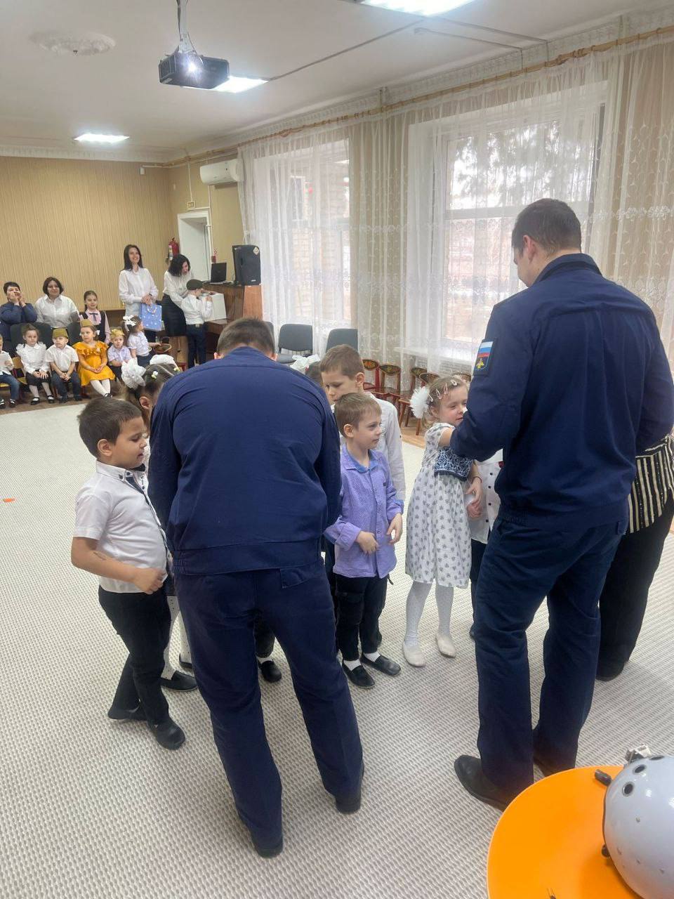Летчики,в свою очередь, рассказали о самолетах, которыми управляют и показали малышам видеокадры из кабины Су-25.
