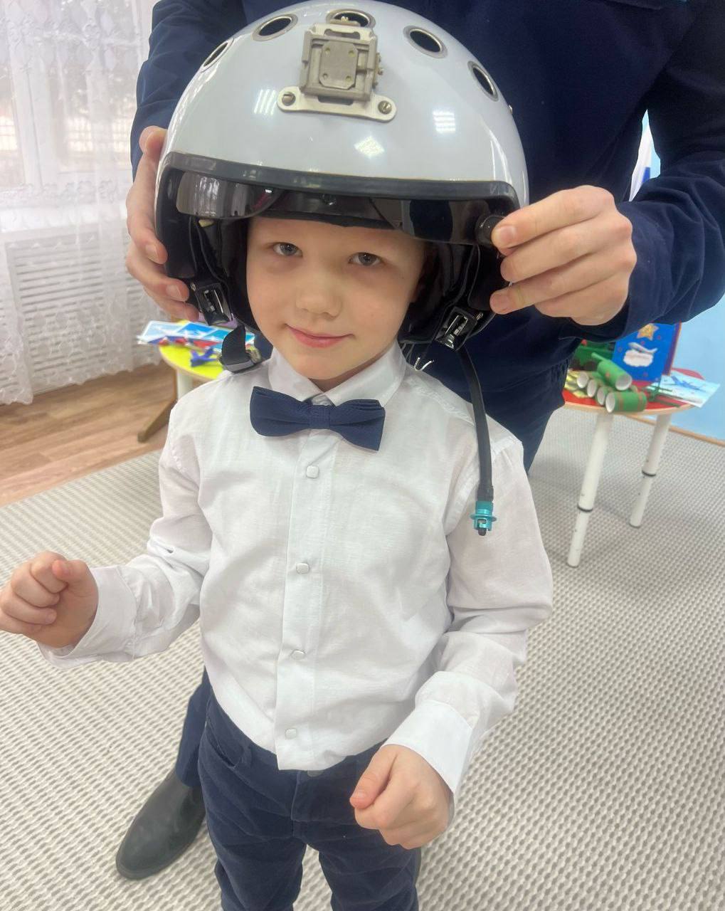 С трепетом и затаив дыхание, мальчики и девочки примерили летный шлем и крепко пожали руки нашим защитникам.