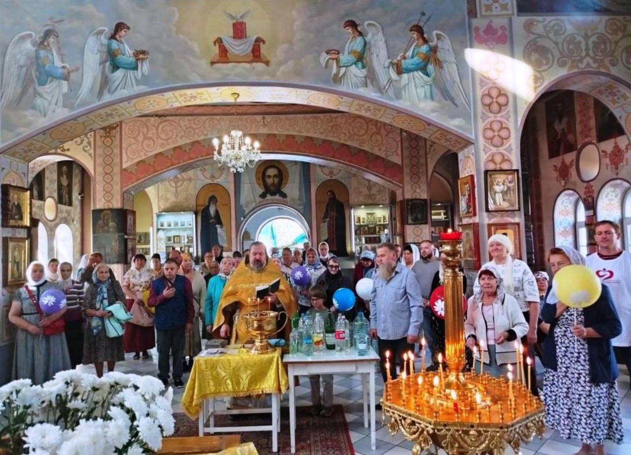Семейная пара из православного молодежного клуба «Добрые сердца» Михаил и Елена поздравили участников семейного клуба «Очаг», учащихся детской воскресной школы и их родителей, вручив каждому буклет с описанием жития святых и воздушные шары с нарисованными ромашками.