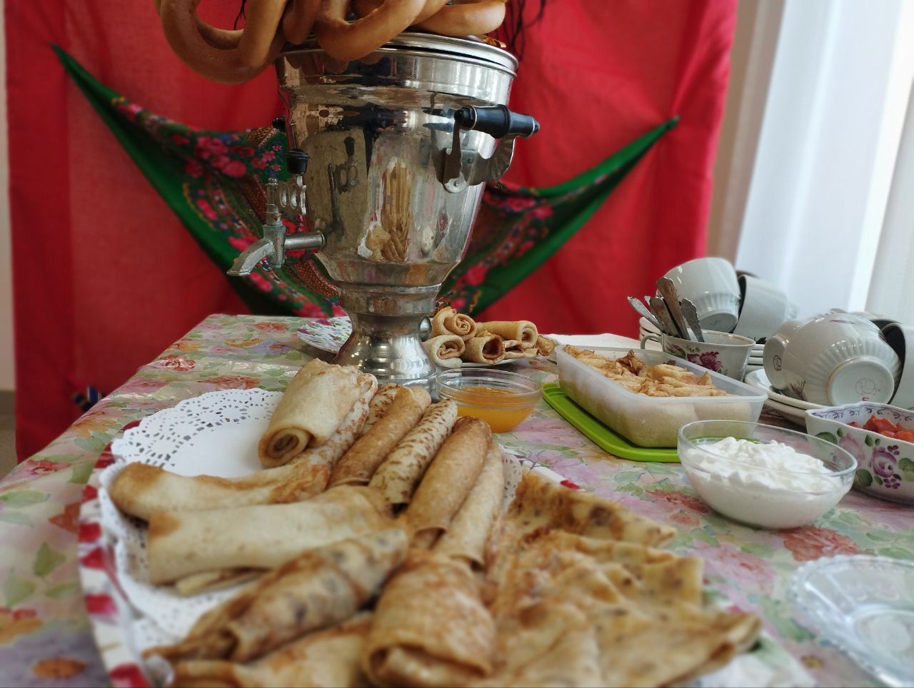 В день проведения Масленицы царила теплая и радостная атмосфера. Все собравшиеся наслаждались масленичными блинами с разной начинкой, делились семейными традиционными рецептами,  пели народные частушки, танцевали под задорную русскую плясовую.