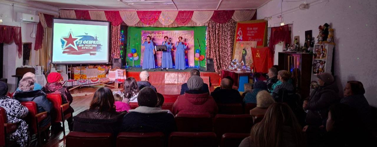 В клубе к празднику подготовлены тематические выставки, участники клубных формирований в этот вечер со сцены исполнили патриотические, всем известные песни об Отчизне, защитниках и родной земле, которую всем нам завещано беречь.