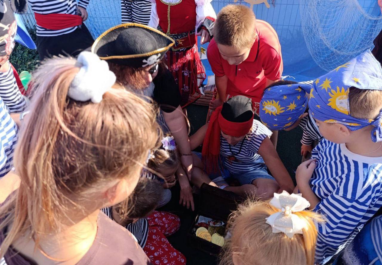 Ребята приняли участие в интересном тематическом приключении, в котором они вместе с пиратами Джеком и Биллом, следуя маршрутному листу и выполняя цепочку логических, поисковых и активных заданий, должны были найти кусочки карты.