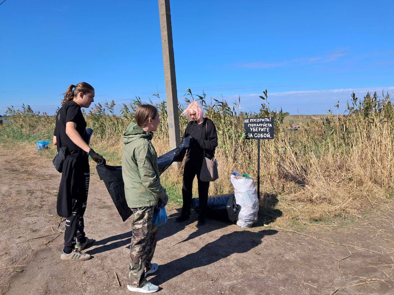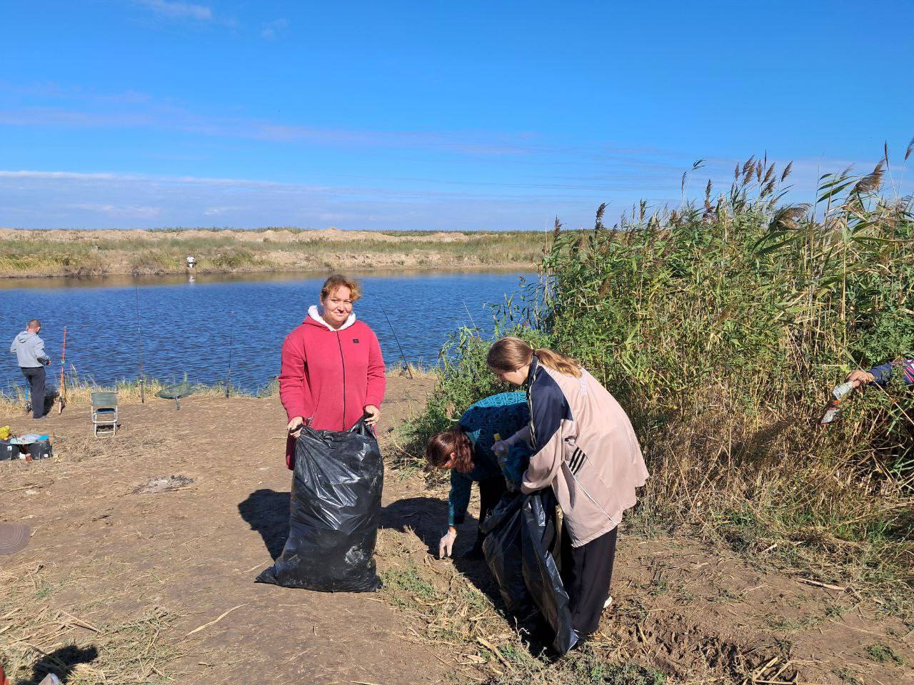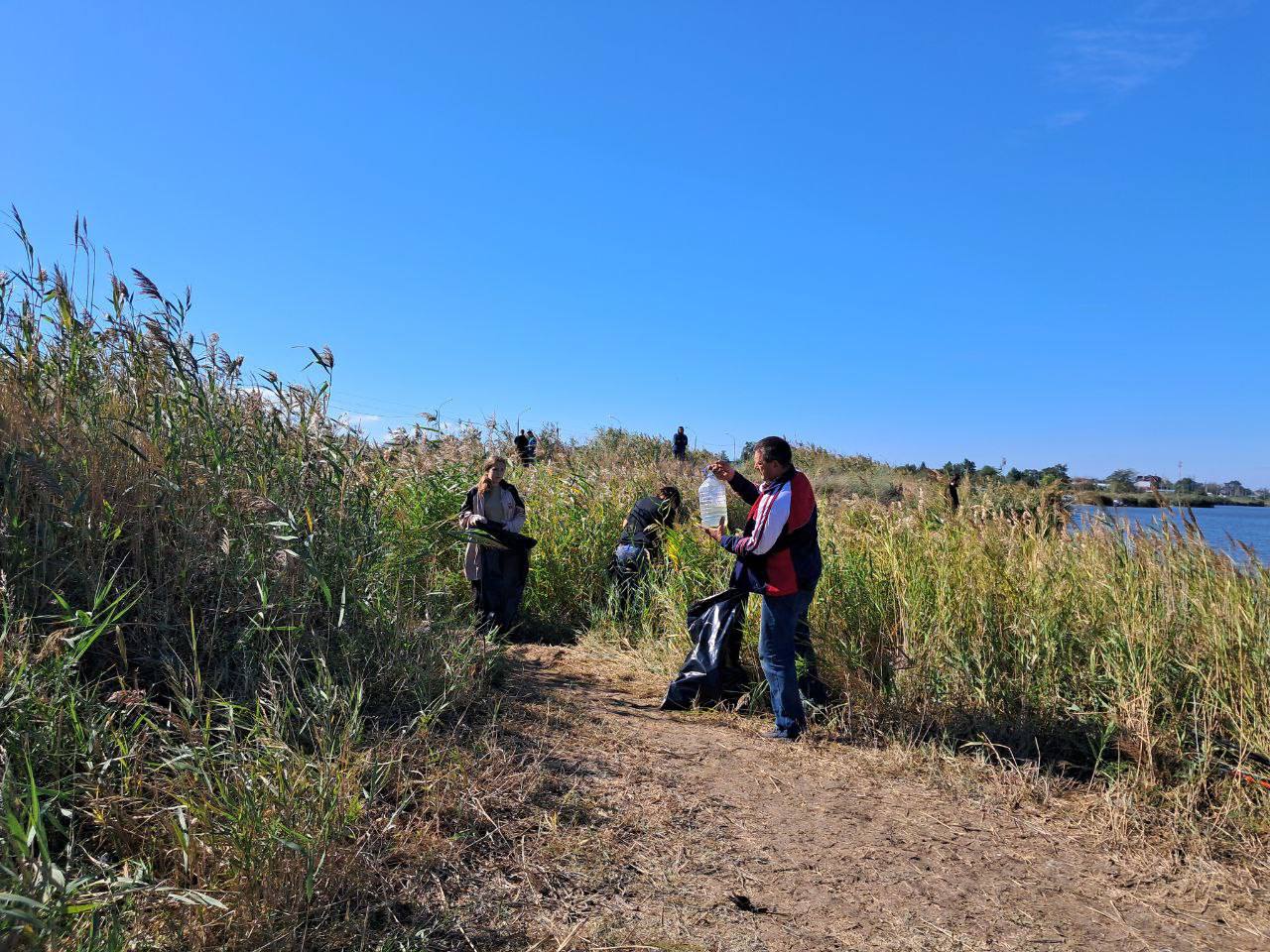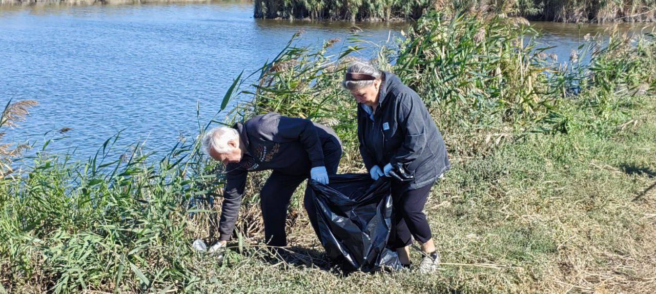 В ст. Бриньковской прошла экологическая акция на берегу реки Бейсуг "Бережём историю и природу вместе!"