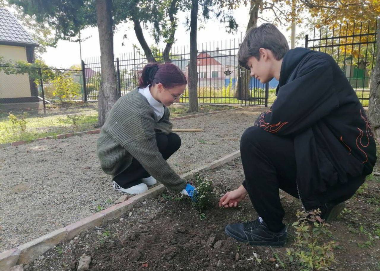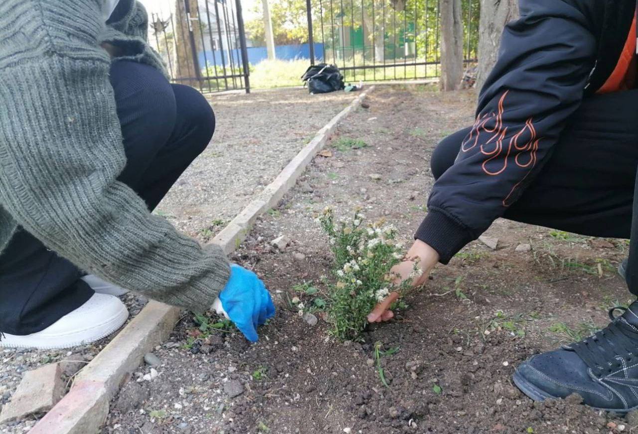 Ребята расчистили площадку от сорняков, высадили многолетние цветы.