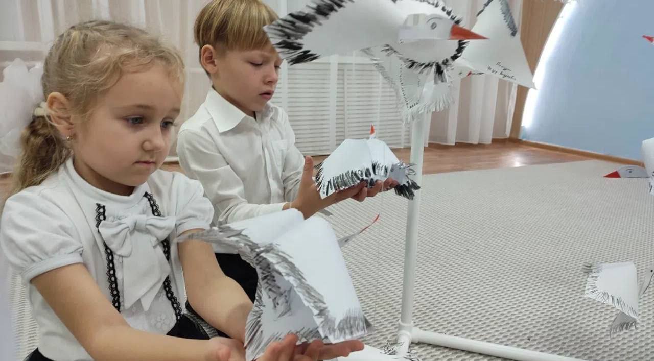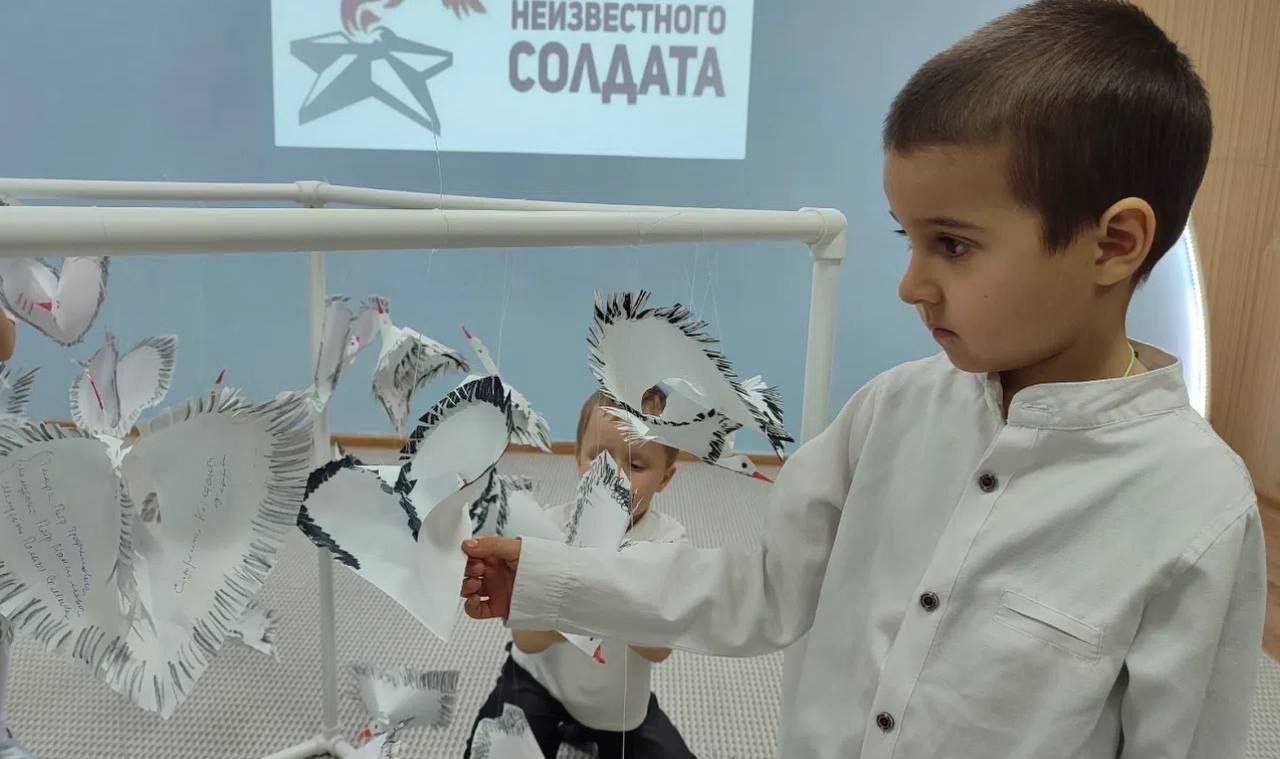 В ходе акции ребята изготовили белых бумажных журавлей. Каждый ребенок разместил его на «Куб Памяти» в знак того, что подвиг героев не будет забыт.